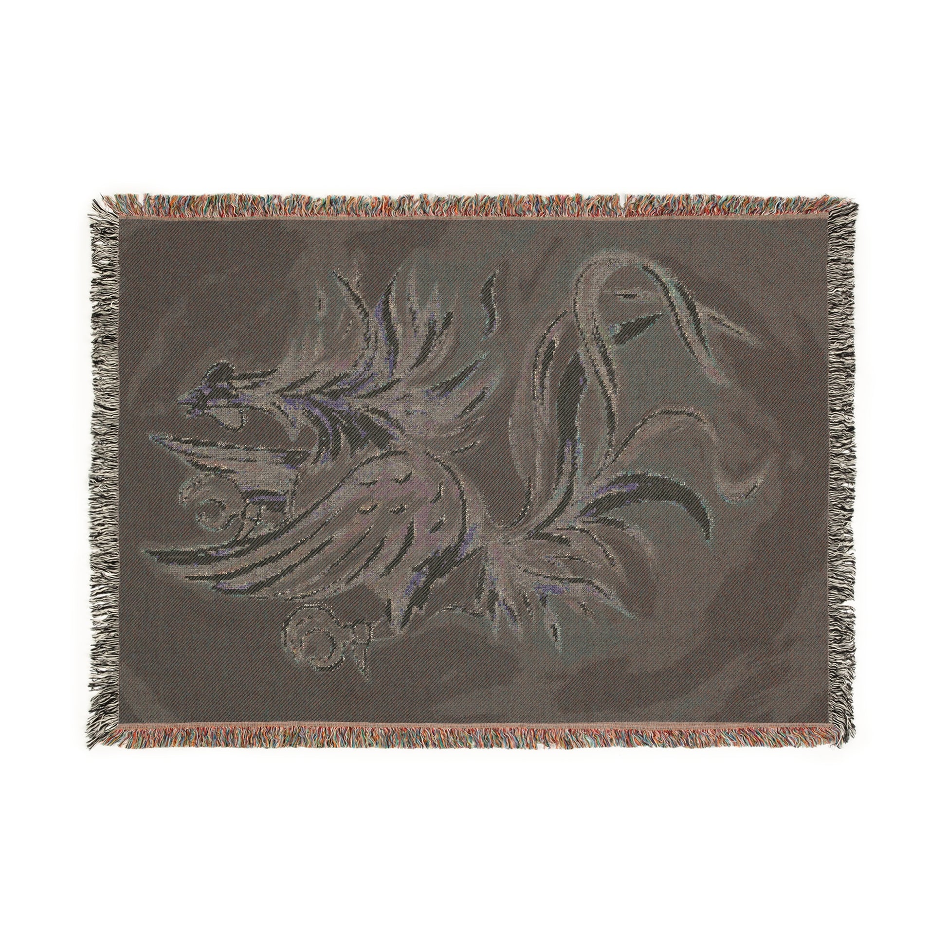 This woven blanket brings tactile, artisan energy to any room. Handlike woven threads form a detailed, slightly distressed floral-botanical motif that reads like a vintage tapestry: layered petals, curling leaves and soft tonal shifts sit against a deep, moody background. The fringed edges add a casual, lived-in finish that invites you to curl up on the sofa, drape it over a reading chair, or lay it at the foot of a bed. Choose the Photo variant when you want subtle gradients and photographic depth; choose the Artwork variant when you want bold, graphic color blocks and crisper edges. Each size offers the same dense, soft 100% cotton weave for everyday use and long-lasting texture.